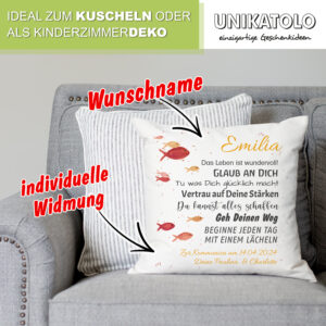 Ob als Geschenk von Eltern, Paten, Großeltern oder Freunden – ein Kissen aus dieser Kategorie ist mehr als nur ein schönes Wohnaccessoire. Es ist ein Symbol für Wertschätzung, Liebe und gute Wünsche für den weiteren Lebensweg. Durch die Kombination aus zeitlosem Design und persönlicher Aussage entsteht ein Geschenk, das sowohl optisch als auch emotional berührt.