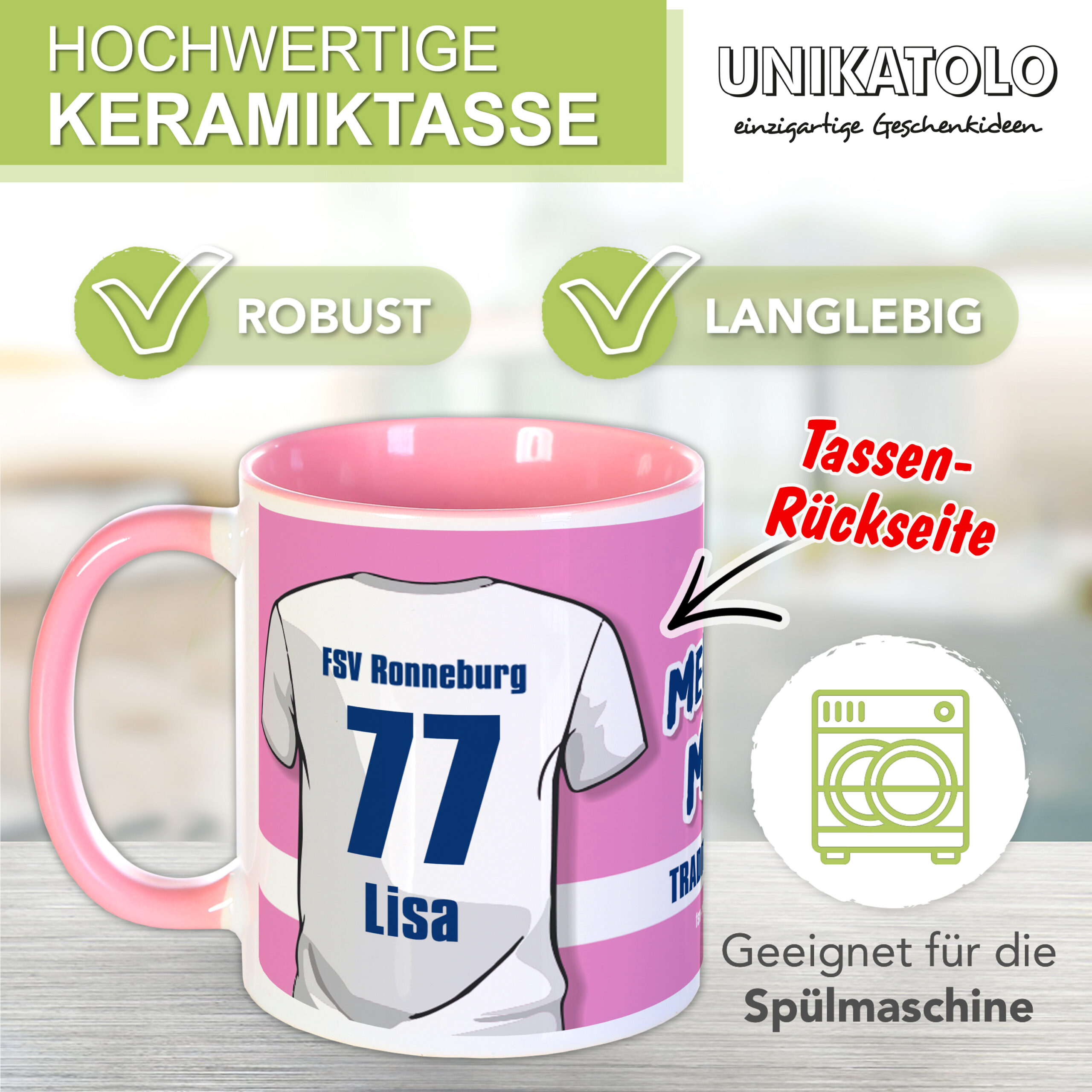 Schreibe die erste Bewertung für „FSV Ronneburg Tasse mit Trikot personalisiert | rosa“