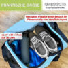 Mit kompakten Maßen von ca. 47 x 30 x 27 cm bietet die Tasche dennoch großzügige 38 Liter Stauraum. Zwei seitliche Reißverschlusstaschen – eine davon mit praktischem Lüftungsnetz – sorgen für Ordnung und ausreichend Platz für Schuhe, Handtücher oder kleinere Utensilien. Dank des abnehmbaren, längenverstellbaren Schultergurts mit Polsterung lässt sich die Tasche bequem tragen, egal ob über die Schulter oder in der Hand.