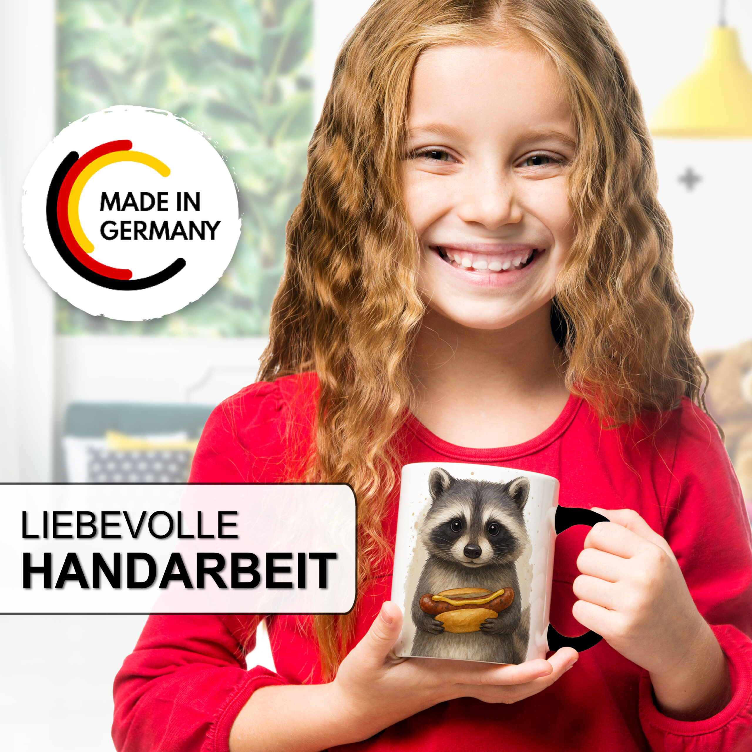 Diese liebevoll gestaltete Unikatolo Tasse mit Waschbär und Roster bedruckt, vereint Heimatgefühl, Qualität und zeitloses Design auf besondere Weise. Im Mittelpunkt steht ein freundlich illustrerter Waschbär, der eine Roster in den Pfoten hält – ein Motiv, das Genuss, Bodenständigkeit und regionale Verbundenheit ausstrahlt. Die schwarzen Innenseite und der farbige Henkel verleihen der Tasse eine ruhige, hochwertige Optik und lassen das Motiv besonders gut zur Geltung kommen. Innen ist die Tasse klassisch weiß gehalten und sorgt so für einen schönen Kontrast.