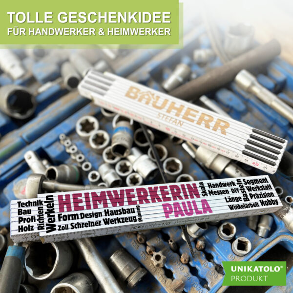 Bestelle jetzt deinen individuell bedruckten Zollstock und mache ihn zu einem einzigartigen Geschenk für kleine oder große Handwerker – personalisiert mit Namen. Weitere Zollstöcke findest du HIER.